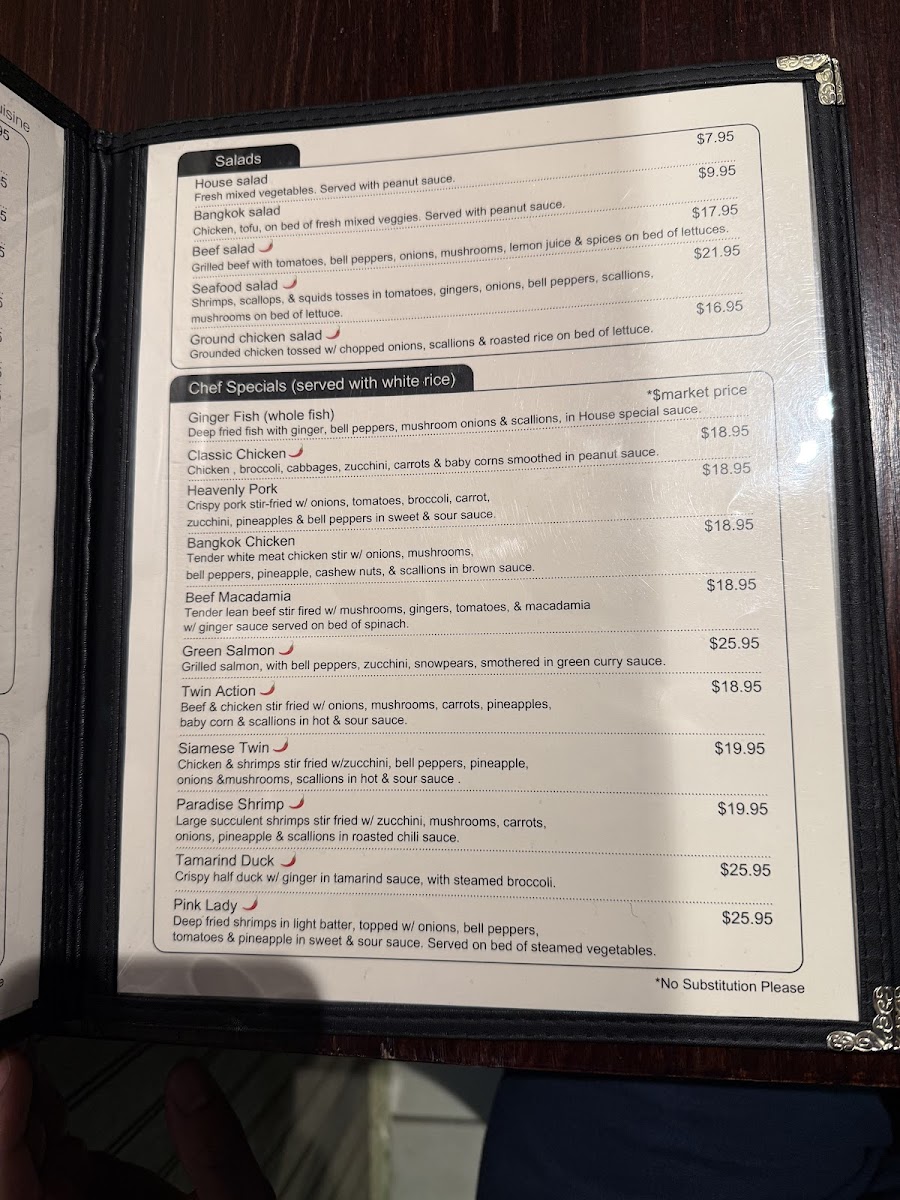 The menu is a testament to the rich nuances of Thai cuisine. Start with the Tom Kha, bursting with robust flavors that transport you straight to Thailand. For mains, the Mussaman Curry stands out as a crowd favorite, while the extensive vegetarian options, including dishes brimming with tofu and fresh vegetables, cater to all palates.